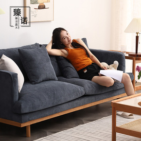 北欧樱桃木实木沙发灯芯绒布艺现代简约日式小户型客厅...
