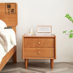 北欧樱桃木全实木床头柜卧室储物收纳小户型边柜日式现...