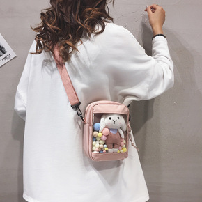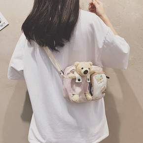 包包女2021新款日系帆布包新款斜挎小包学生可爱透...