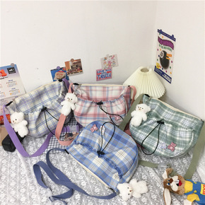 格子包包女包小清新日系韩版学院风单肩斜斜挎包大容量...
