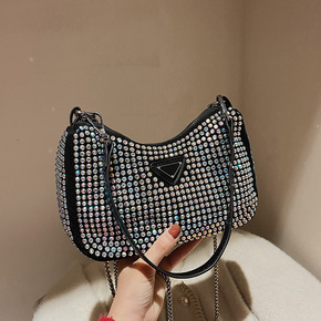 百搭ins斜挎包包女夏2022新款潮时尚菱格链条包...