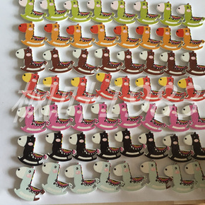 小木马可爱卡通彩绘木质纽扣DIY服装辅料彩印摇摇马...