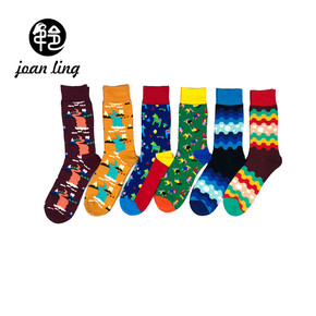 跨境大码Happy 袜 风景山脉纹圆点图案彩色撞色...