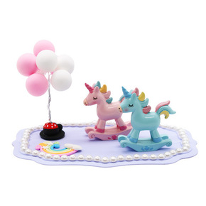 儿童生日蛋糕装饰摆件独角兽彩虹小木马烘培装饰用品甜...
