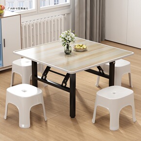 白色椅子现代矮桌吃饭长方形折叠茶几餐桌两用餐桌椅麻...