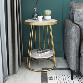 .客厅沙发边几岩板轻奢金色铁艺圆形茶几酒店卧室可移...