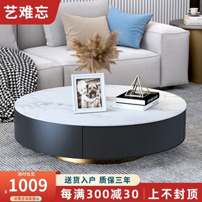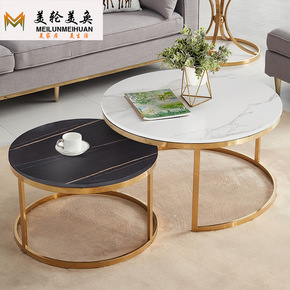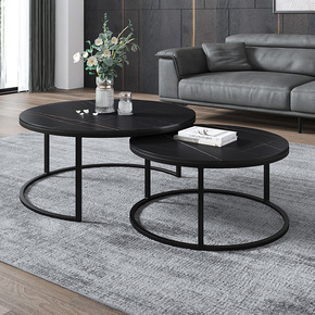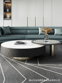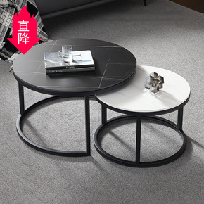 意式岩板茶几组合 大小圆高低组合伸缩圆茶几设计师伸...
