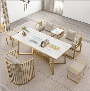 新中式创意沙发桌椅大理石客厅茶几茶桌椅组合长方形茶...