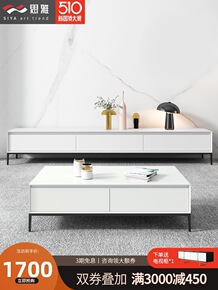 轻奢岩板电视柜茶几组合现代简约小户型钢化玻璃新款电...