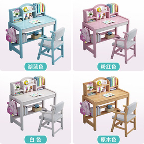 书桌书柜一体简易儿童学习桌实木组合女孩写字桌简约家...