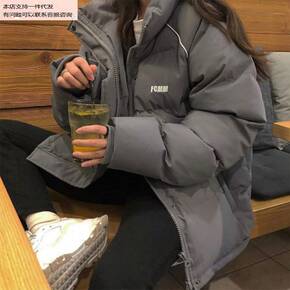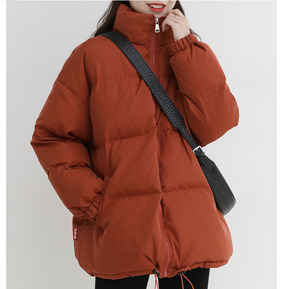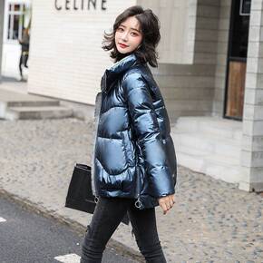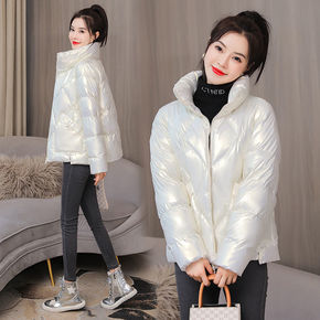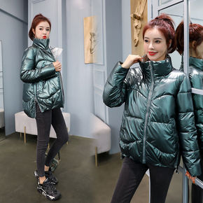 反季亮面立领羽绒棉衣女短款2021新款韩版宽松棉服...