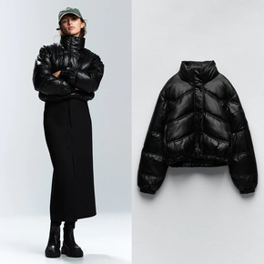 ZA 2021冬季新款百搭立领仿皮短款棉服外套女0...