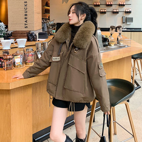 咖色派克服加绒棉衣女工装棉袄小个子2021冬季新款...