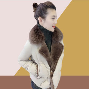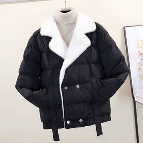 2021秋冬装新款短款亮面ins立领羊羔毛拼接羽绒...