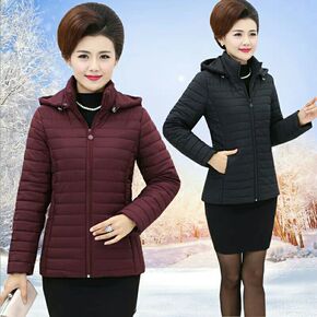 可脱卸帽领中老年女装冬装轻薄保暖棉服短款连帽立领大...
