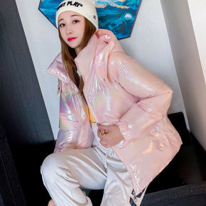 棉衣女短款2021反季新款亮面羽绒棉服韩版宽松立领...