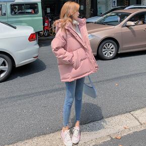 粉色羽绒棉服女短款棉袄冬季韩版宽松面包服小个子中长...