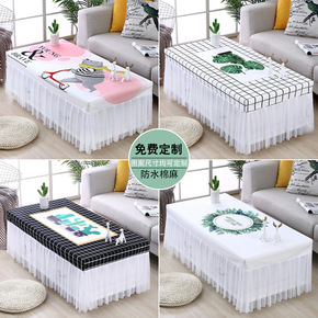防水茶几桌布布艺蕾丝北欧茶几套罩全包长方形客厅家用...