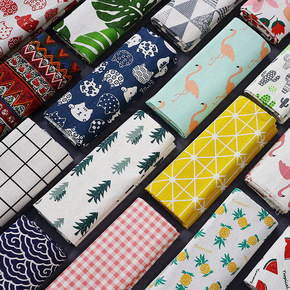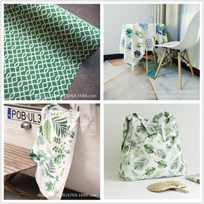 包包布料棉麻桌布台布面料布料布艺批发叶子清新款棉布...