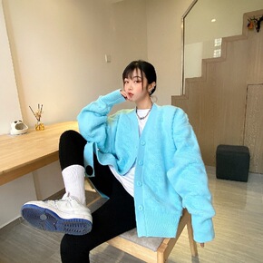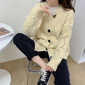 2021年秋新款韩版秋冬百搭慵懒外穿针织开衫宽松日...