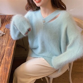 2021早秋新款韩国复古慵懒风上衣小鹿绒毛衣女秋冬...