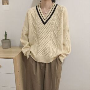 SCLB秋冬学院风针织毛衣女2021韩版新款宽松V...