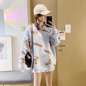 2021新款秋冬韩版宽松外穿针织小熊套头慵懒针织衫...