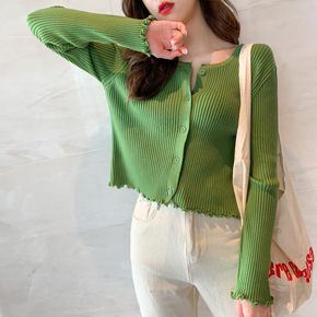 2021年秋季新款韩版纯色针织开衫外套毛衣女装温柔...