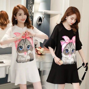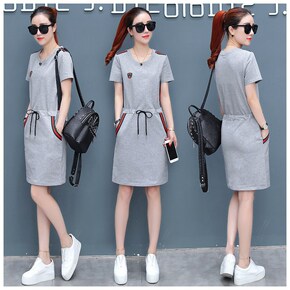 休闲连衣裙女夏2020新款女装短袖韩版宽松显瘦中长...