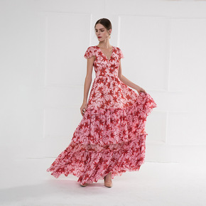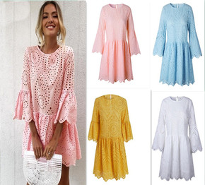 2021欧洲站工厂货源新款蝴蝶时尚勾花镂空蕾丝连衣...