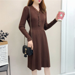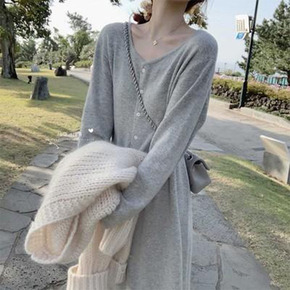 面料名称:针织 主图来源:实拍有模特 货源类别:现货 风格:优雅 图案:纯色 工艺:拼贴/拼...
