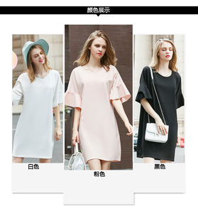 跨境春秋新款韩版女装长袖连衣裙女清新甜美宽松喇叭袖...