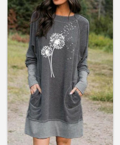 2019秋装新款 文艺复古棉麻连衣裙 亚麻长袖印花...