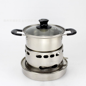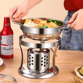 加厚不锈钢固体液体酒精炉小火锅锅酒吧鼎干锅家用小锅...
