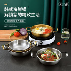 无磁加厚不锈钢金耳小炒锅仔韩式干锅盘酒精炉小火锅饭...