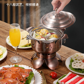不锈钢一品炉小火锅 金色狮头 单人酒精炉 自助一人...
