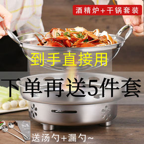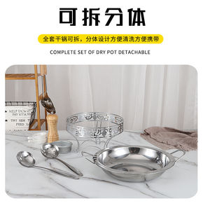 饭店不锈钢加厚酒精炉干锅锅家用套装8寸9寸不易粘干...