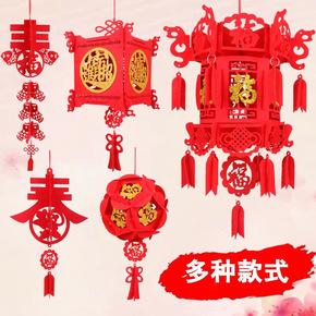 无纺布毛毡灯笼宫灯福字绣球春字挂件手提小灯笼春节结...