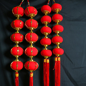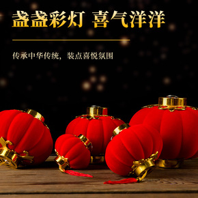婚庆灯笼春节装饰植绒圆形小灯笼串年货中国特色手工定...