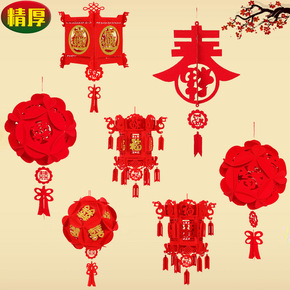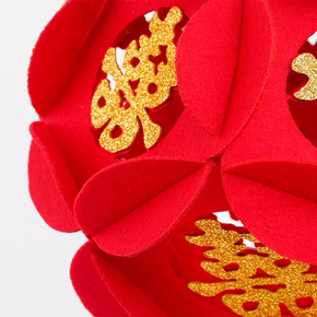 毛毡无纺布宫灯新款福字花球 六角灯笼 春节结婚喜庆...