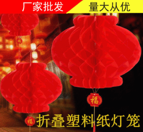 折叠塑纸灯笼 蜂窝大红小灯笼挂饰 开业商场布置装饰...