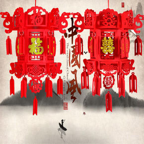 新年春节装饰小灯笼树上挂件婚房喜字拉花室内布置套结...