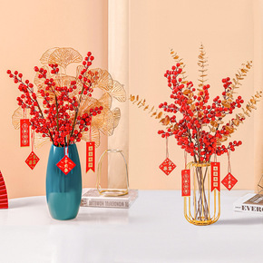 冬青红果仿真花发财果泡沫果假花装饰品摆件新年喜庆婚...