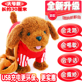 儿童电动玩具狗 牵绳狗泰迪会唱歌会叫的电子小狗仿真...