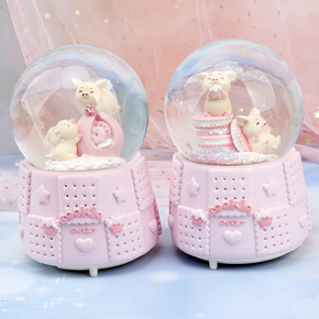 可爱饼干小猪卡通可爱水晶球自动飘雪花带灯创意礼品水...