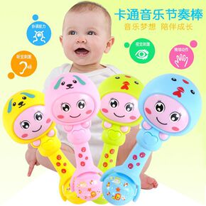 新款宝宝节奏棒摇铃沙锤0-3岁早教故事机小猪牙胶婴...