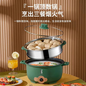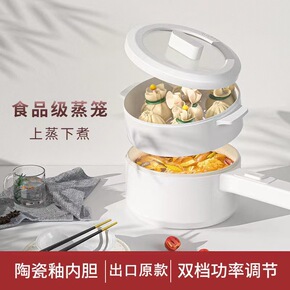 单柄电火锅宿舍小火锅带蒸格煮面电锅不粘锅一体迷你锅...