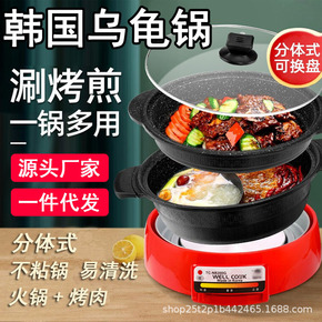 韩式乌龟锅多功能鸳鸯电火锅家用电热锅分体式东北烤肉...