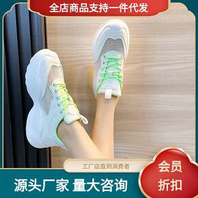 网面透气小白鞋女2022夏季新款女鞋薄款百搭增高厚...