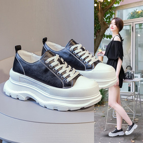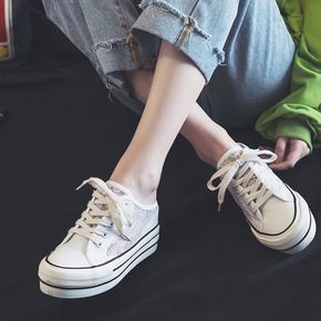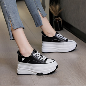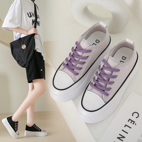 2022春季白色内增高帆布鞋百搭小白鞋学生厚底休闲...
